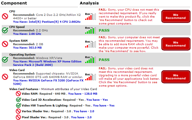 Some how my graphics card didn't pass crysis... This is recommended tho not minimum. Everything else checks out tho so im happy. =)