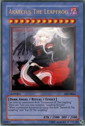 | Cookiemaster wrote: | | Yeah I'm sure Ritual monster can only be summoned with a Ritual Magic card, otherwise they would be Effect Monsters. |