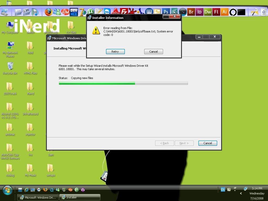 I'm trying to install the DDK and I keep getting an error from the installer.