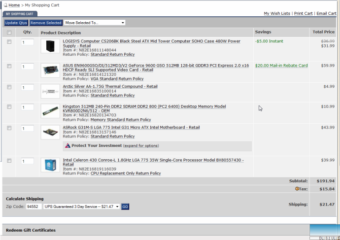 Honestly, $200 is too little, considering you don't have a PSU, hard drive, or optical drive, which will send the total up another $100. You can throw away that thermal paste and dedicated graphics card; the paste is already included in the Heatsink/fan from the CPU and the G31 chipset sports Intel GMA3100 graphics (which does suck a lot, but that $40 will probably have to go to all the parts you're missing).