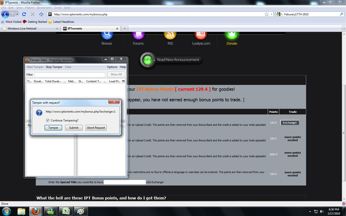 PostPosted: Wed Feb 17, 2010 3:28 pm    Post subject: IPT bonus points exploit Reply with quote