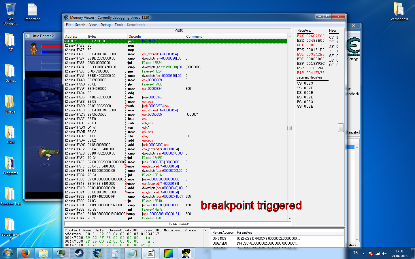 "lf2.exe"+1FA80: 8B B4 BB 94 01 00 00 - mov esi,[ebx+edi*4+00000194]