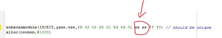 return string.format('aobscanmodule(INJECT,game.exe,8D 52 02 88 01 8D 49 01 %02X %02X)', number & 0xff, number >> 8 & 0xff)