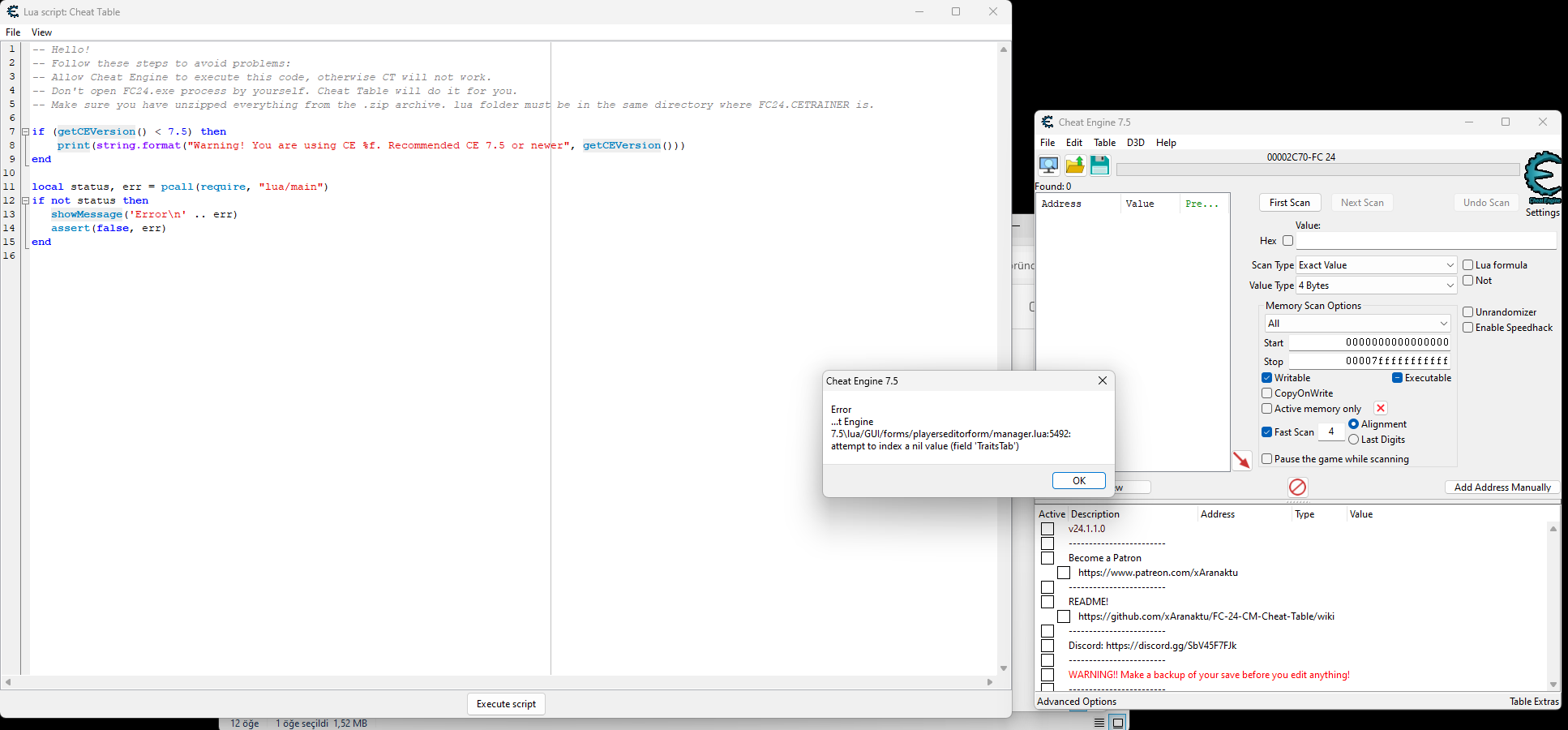 fc 24 trainer error